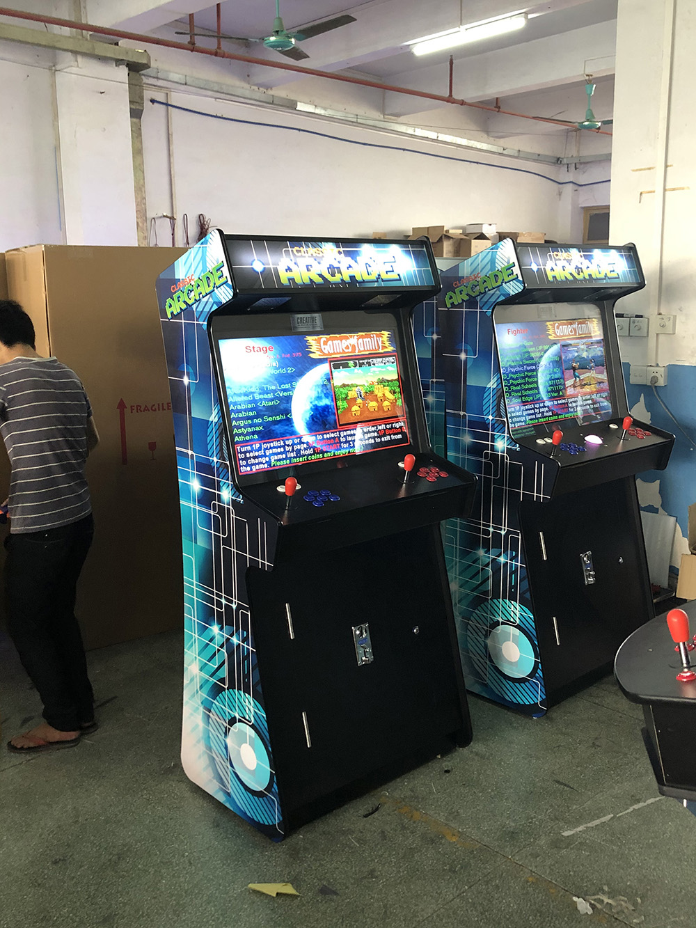 This Game will be the showpiece of your home or games room and is a total crowd pleaser with everyones favorite games that never go out of fashion. Space invaders, Galaga, Donkey Kong, Pacman, Pheonix, Frogger, 1942, Gunsmoke, Rally X, Qix, Galaxian, Gyruss, Centipede just to name a few.