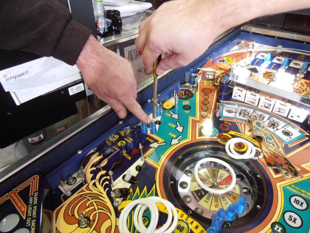 -Playfield repairs and part replacements, re-rubbering and burnt globe replacement